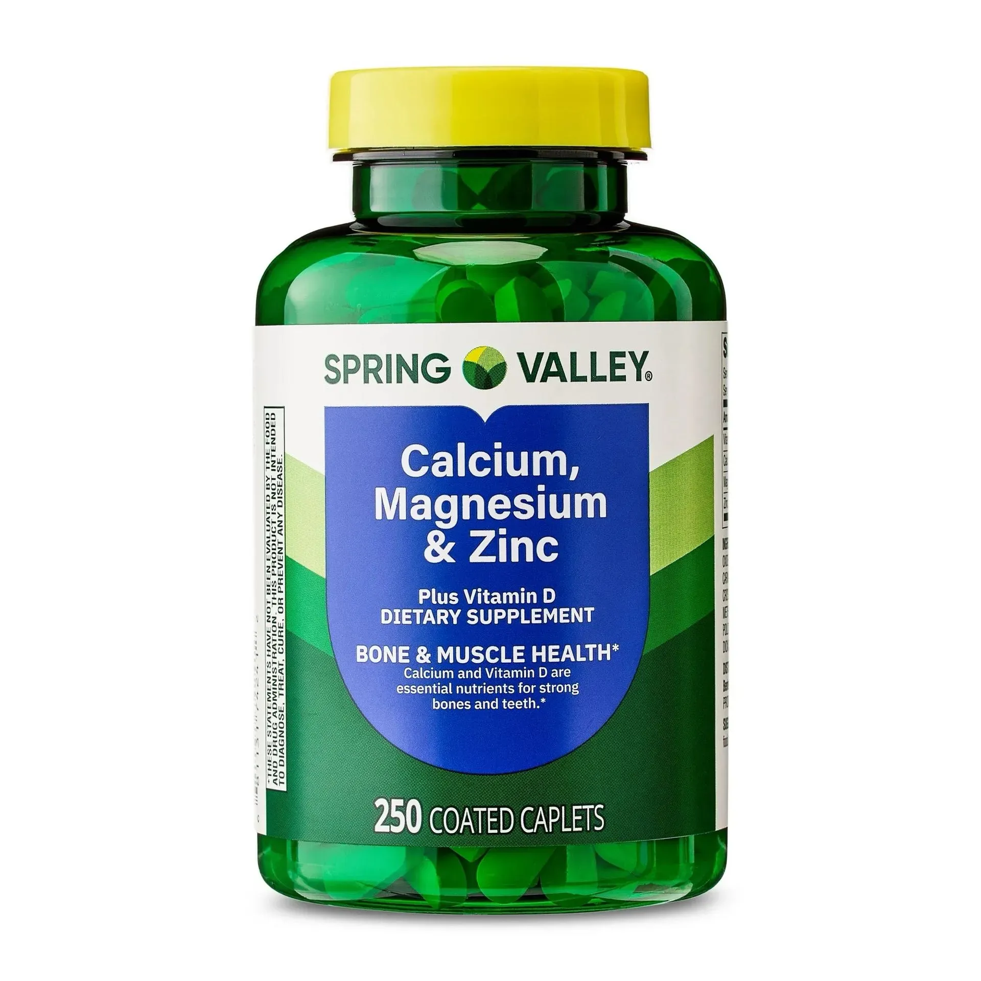Nuestros comprimidos recubiertos con vitamina D3 de Spring Valley Calcium, Magnesium & Zinc Plus están formulados para apoyar la salud ósea y muscular. El calcio y la vitamina D3 son nutrientes esenciales para los dientes y hues...