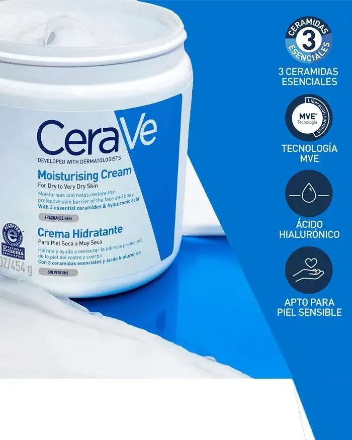 La Crema Hidratante CeraVe es una crema hidratante rica, no grasa y de rápida absorción para pieles secas a muy secas del rostro y el cuerpo. Formulado con tres ceramidas esenciales y Ácido Hialurónico, actúa para retener la humedad y ayudar a mantener la barrera protectora de la piel. Desarrollada...