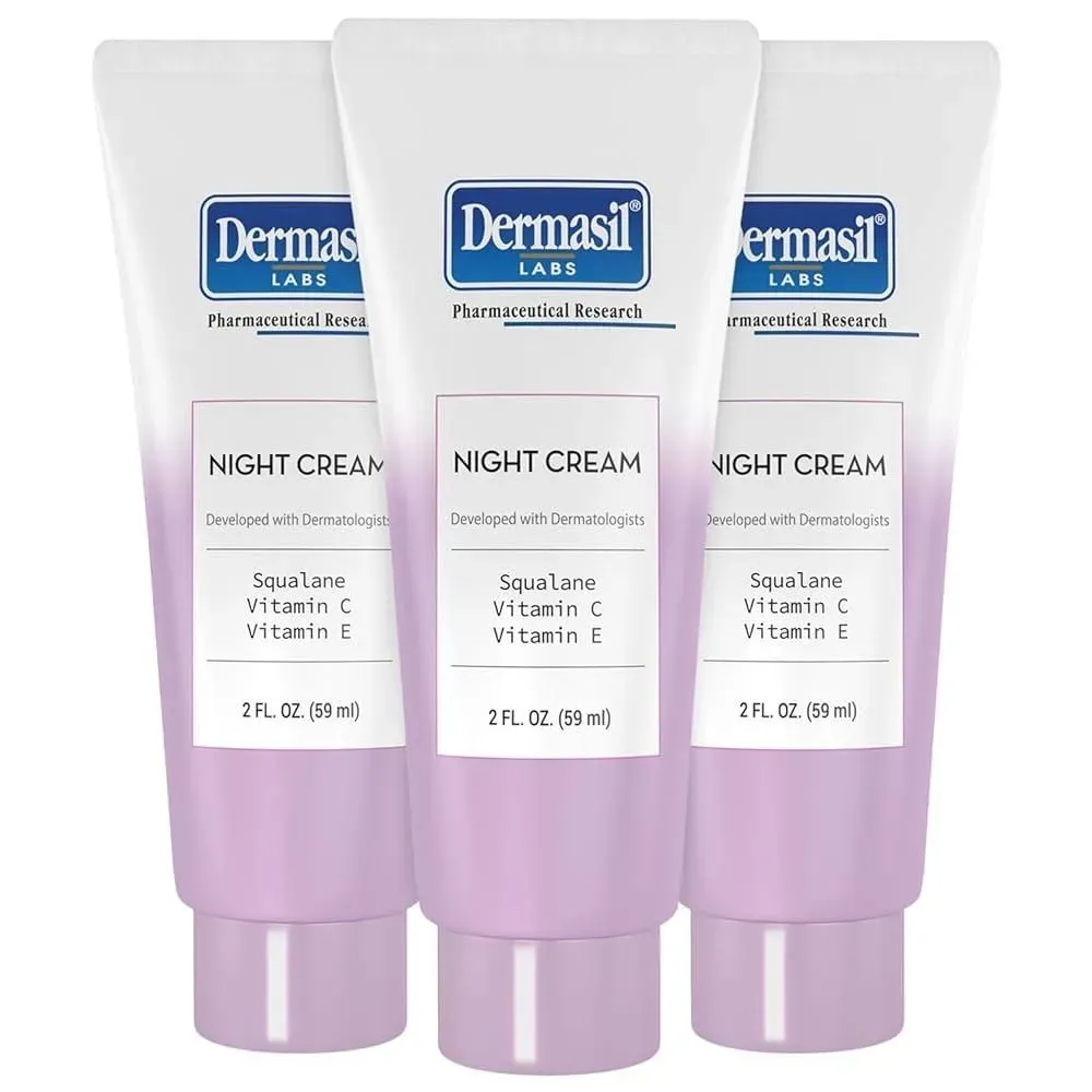 CREMA FACIAL DE NOCHE Una variedad de cremas faciales que mantendrán tu rostro suave como un beso día y noche. La crema facial hidratante sin aceite para la noche suaviza la piel mientras duermes. Ambos de 2 oz. los tubos también contienen vitaminas esenciales A y E. Estas lociones son hipoalergénic...