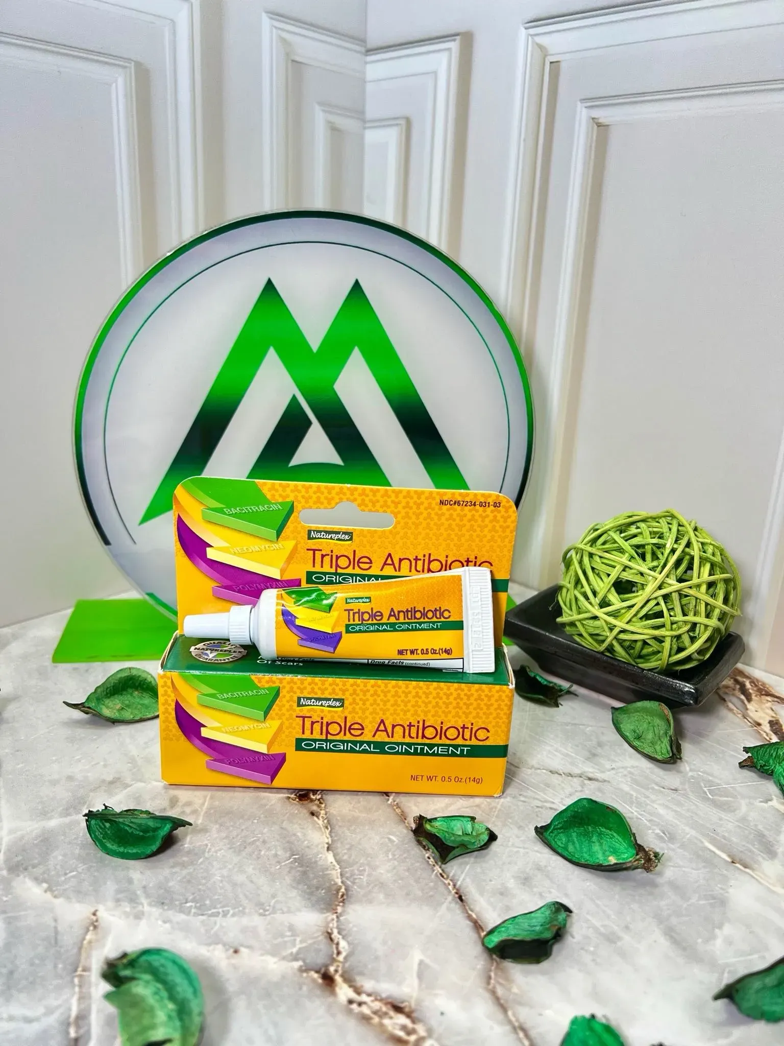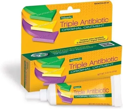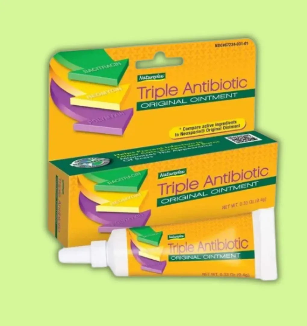 Ungüento que contiene bacitracina, neomicina y polimixina B, lo cuales son antibióticos que se utilizan en combinación en lesiones menores como cortadas, raspones y quemaduras para prevenir un posible infección.